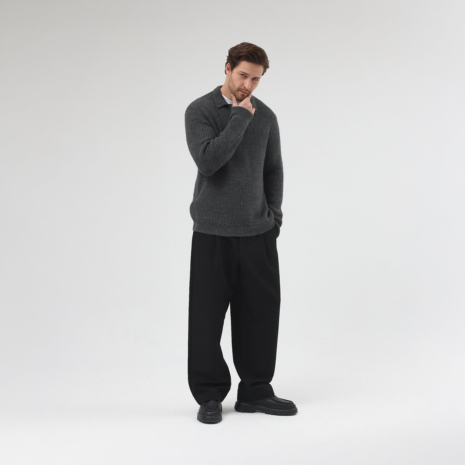 Yarım fermuarlı kazak, Selanik örgü tekniğinin karakteristik dolgun ve hacimli yapısıyla tasarlanmıştır. Yün karışımı sayesinde oldukça sıcak tutar. Comfort Fit kalıba sahiptir. Hafif düşük omuz kesimi ile modern ve rahat görünüm sunar.